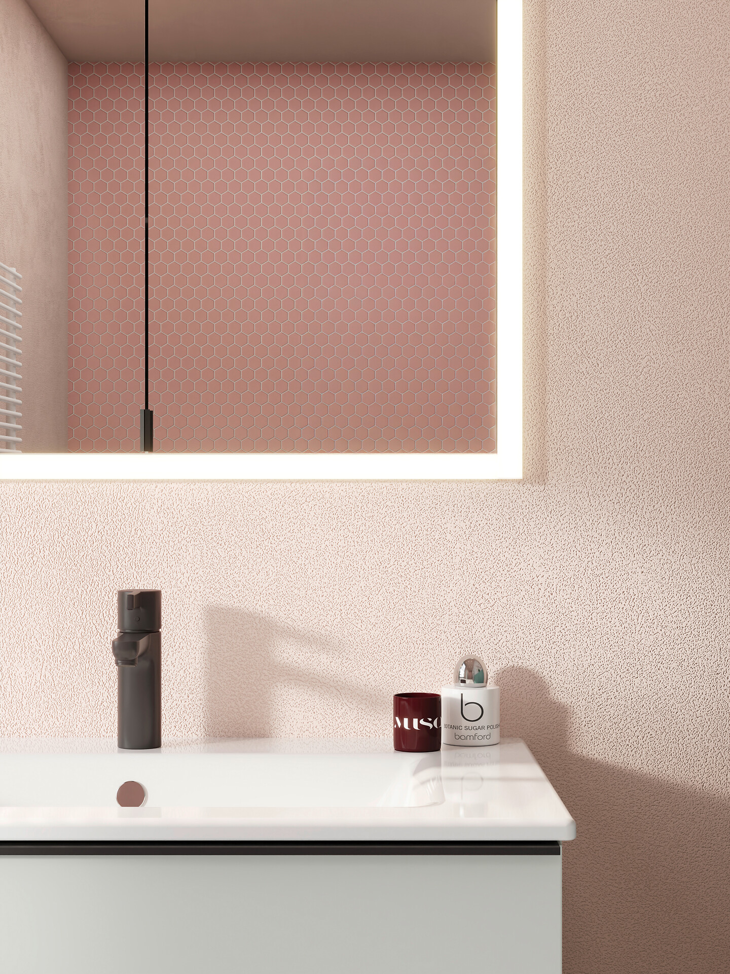 Designinnovation: Spiegelschrank gerahmt von einem homogenen Lichtband